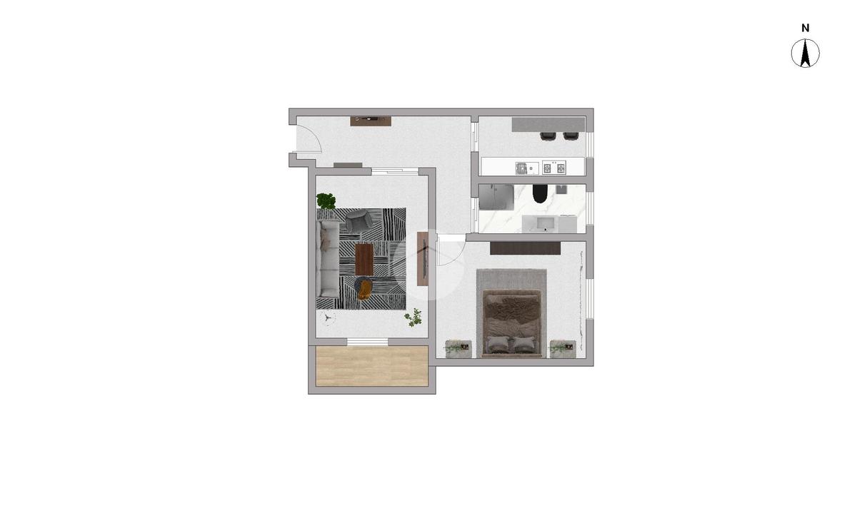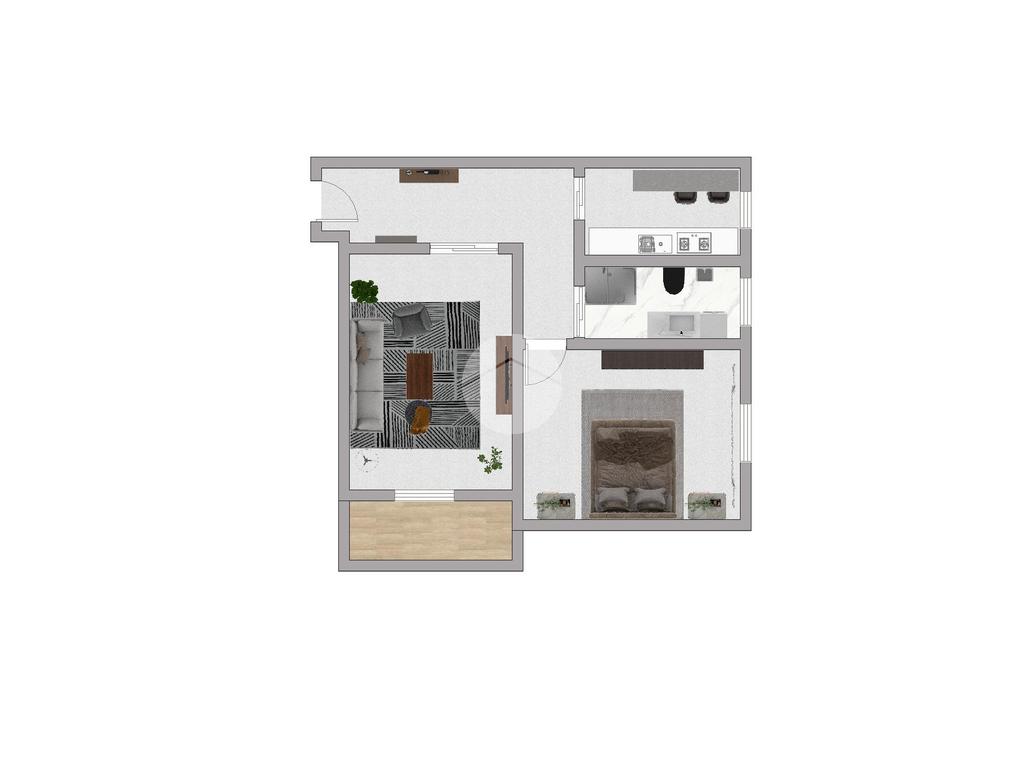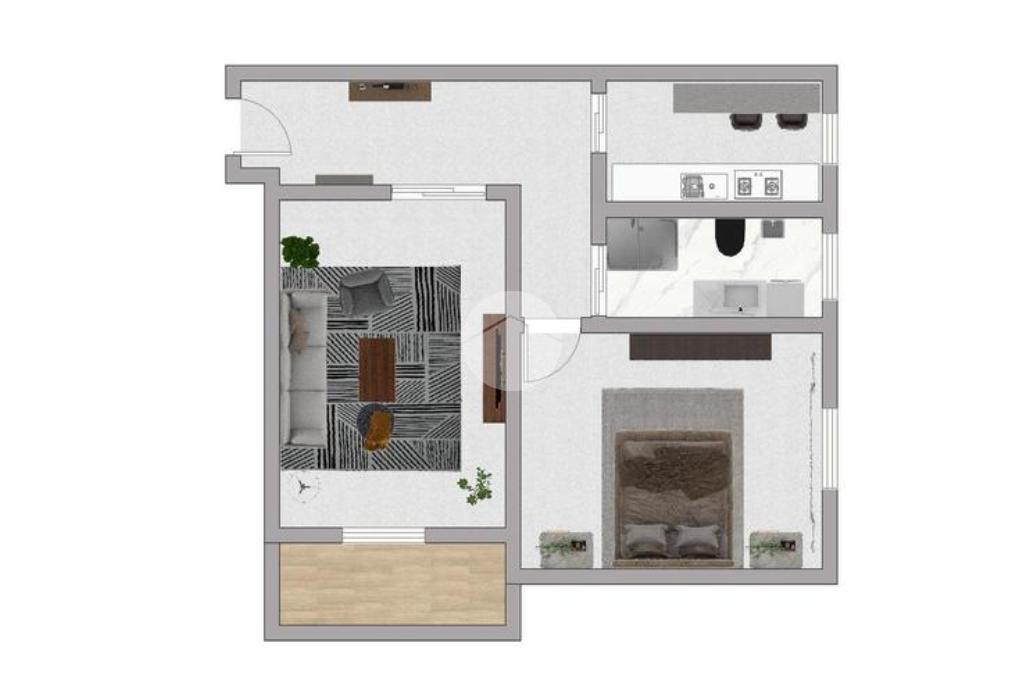 L'immobile è così composto: ingresso in disimpegno, soggiorno con accesso diretto al balcone, cucina abitabile, ampia camera da letto e bagno finestrato.