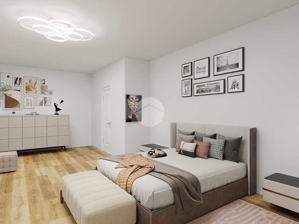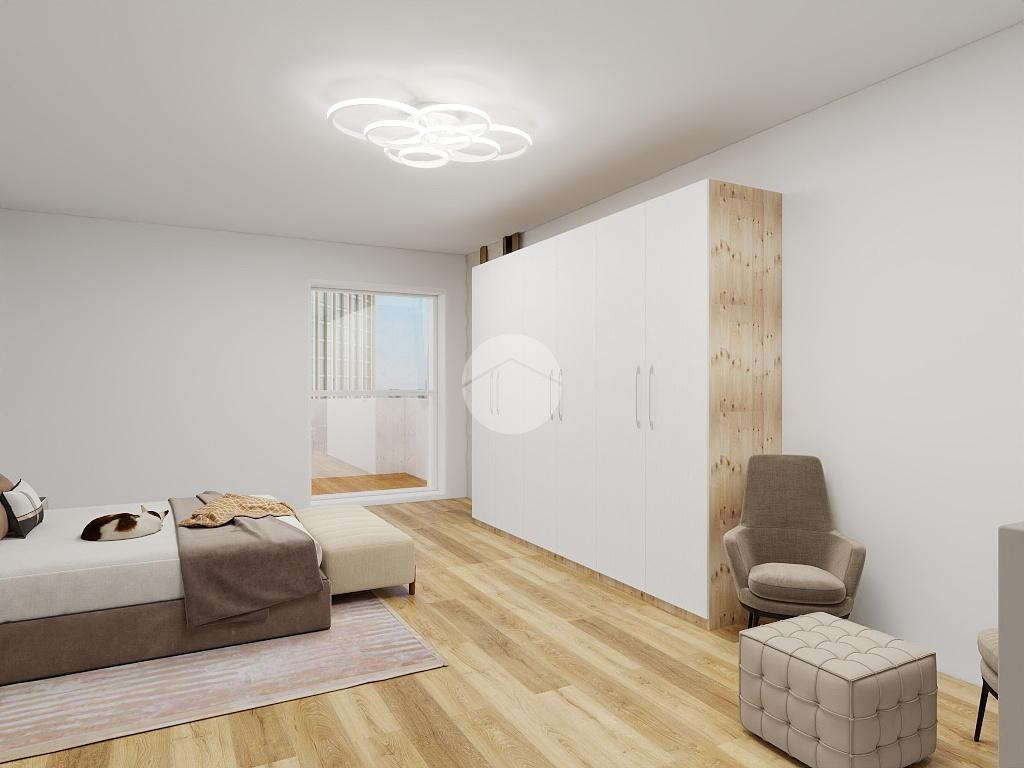In seguito al frazionamento dell'appartamento attuale si propone la possibilità di realizzare un nuovo cespite, così composto: ingresso in disimpegno, cucina- soggiorno in open space, ampia camera matrioniale con balcone, cameretta e bagno finestrato.